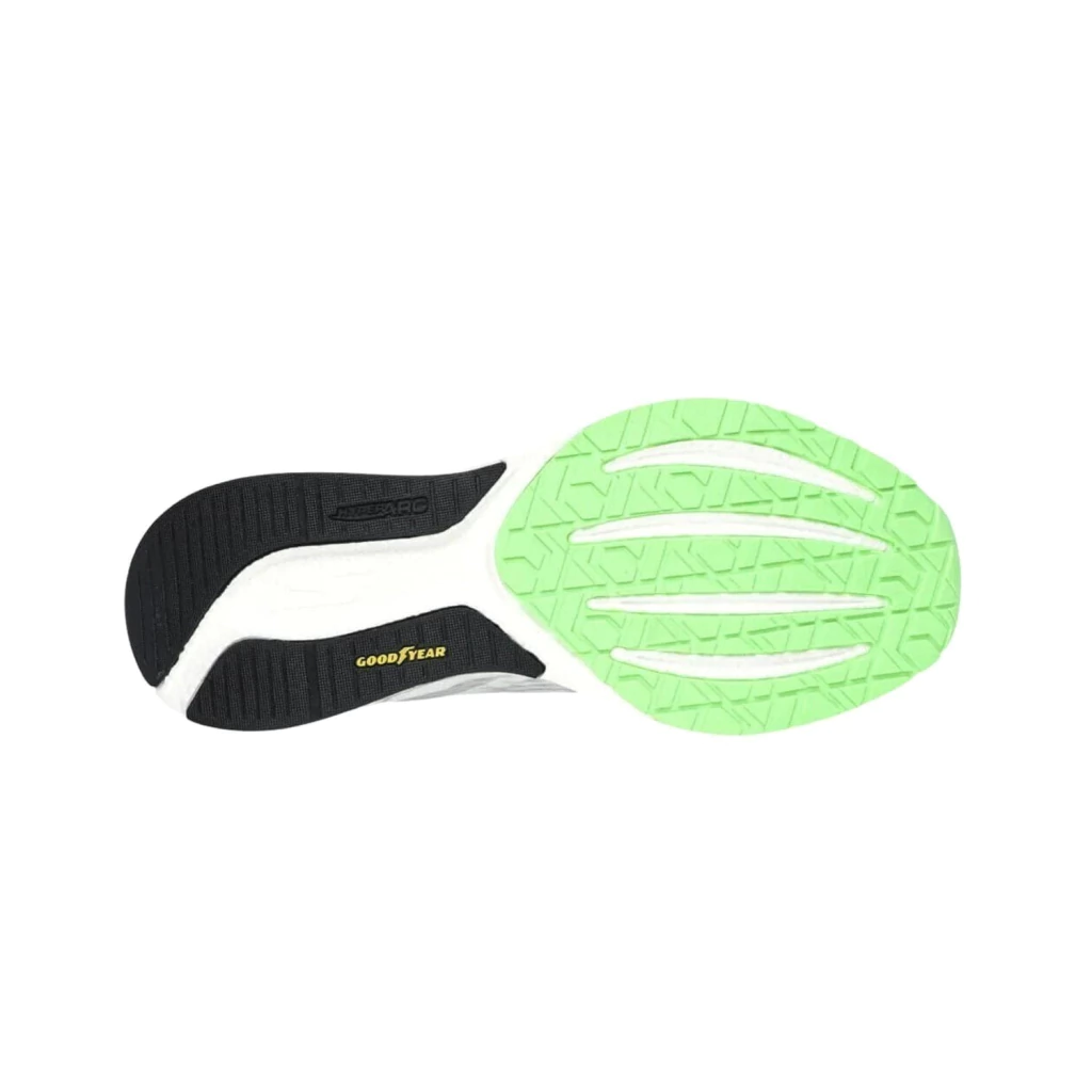 O solado de borracha de alta abrasão é estrategicamente posicionado para garantir tração e durabilidade, mantendo o calçado leve para maior agilidade. A palmilha com tecnologia Skechers Performance oferece suporte anatômico e conforto contínuo, mesmo em longas distâncias. Detalhes refletivos aumentam a visibilidade em corridas noturnas.